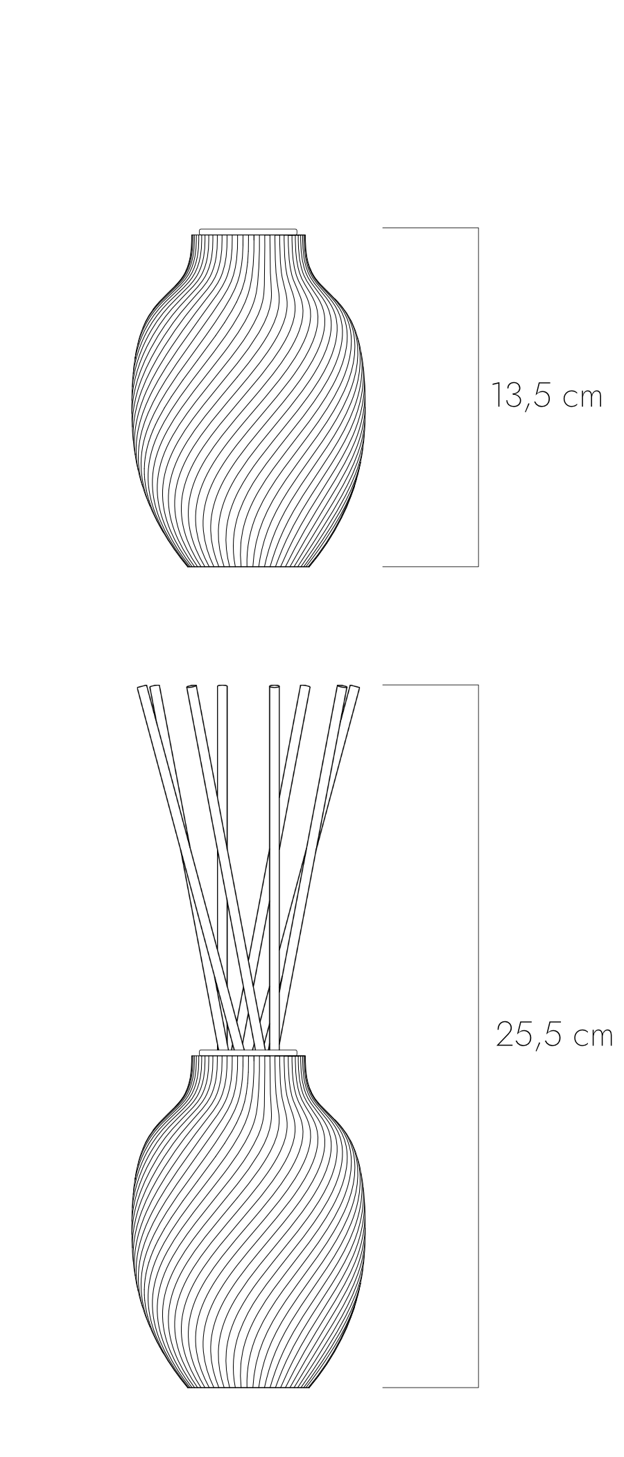La spirale è un invito al movimento: l’essenza, custodita al suo interno, sprigiona un profumo che avvolge.